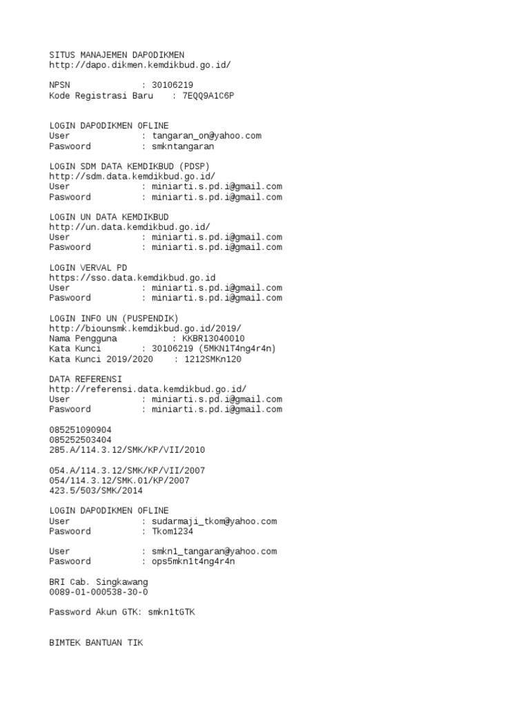 Tentang Npsn Akoenk 97 from lh3.googleusercontent.com Unit layanan terpadu kemdikbud gedung c lantai 1 kompleks kemdikbud senayan jakarta, 10270 call center : Jika belum maka lakukan perbaikan data sekolah dengan hubungi operator sekolah data referensi pendidikan. Operator satuan pendidikan mendistribusikan akun pembelajaran tersebut kepada setiap pengguna akun pembelajaran. Informasi untuk seluruh pengelola data pendidikan, berikut terlampir standar pelayanan pemberian nisn. Boleh juga pakai kelas online lainnya, dan jangan lupa tetep menggunakan rumah belajar untuk suplemen materinya. Pilih tombol "unduh akun" untuk mengunduh csv yang berisi daftar nama akun (user id) dan akses masuk akun (password) akun pembelajaran di satuan pendidikan yang bersangkutan; Artikel tentang verval ptk ini ditulis dengan dasar dari pusat data dan statistik pendidikan (pdsp) kemdikbud. Pengertian nomor induk siswa nasional adalah, kode pengenal identitas siswa yang bersifat unik, standar dan berlaku sepanjang masa yang dapat membedakan satu siswa dengan siswa lainnya di seluruh sekolah indonesia dan sekolah indonesia di luar negeri;